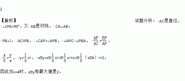 如图,直线l与半径为4的⊙O相切于点A,P是⊙O上的一个动点(不与点A重合),过点P作PB⊥l,垂足为B,连接PA.设PA=x,PB=y,则(x﹣y)的最大值是________.
