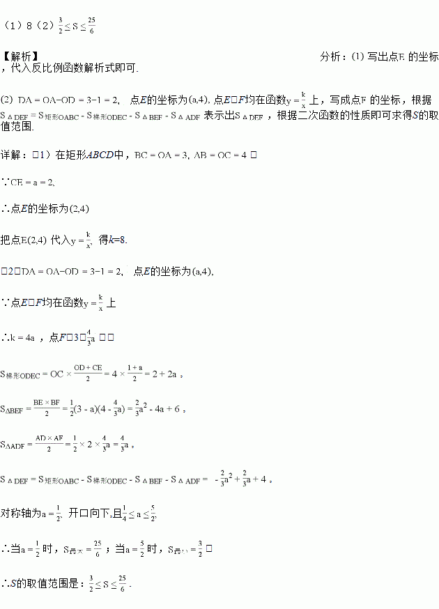 (2)若OD=1,设S为EFD的面积,求S的取值范围.![]()