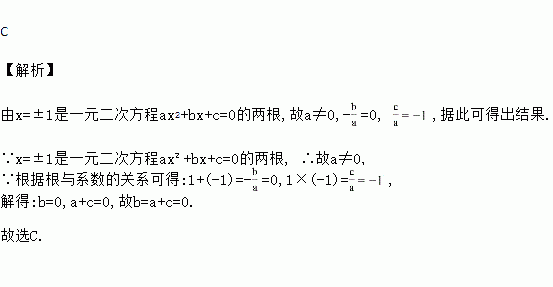 若x=±1是一元二次方程ax2+bx+c=0的两根,则( )
