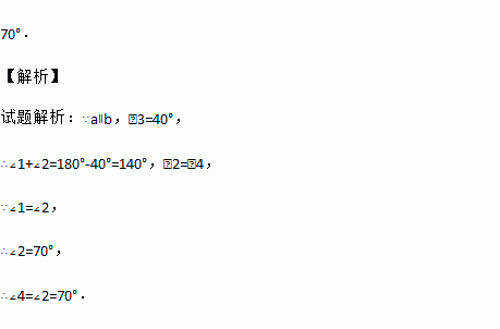 如图,a∥b,∠1=∠2,∠3=40°,则∠4等于 .