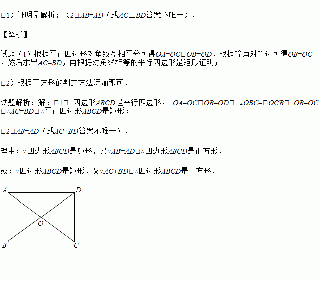 (2)请添加一个条件使矩形ABCD成为正方形.