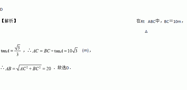 ,坝高BC=10 m,则坡面AB的长度是( )