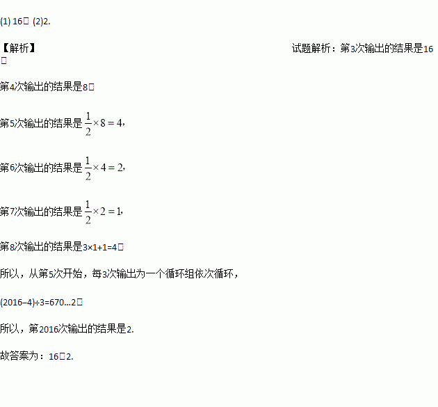 的值是3,可发现第1次输出的结果是10,第2次输出的结果是5,第3次输出的结果是 ,依次继续下去…,第2016次输出的结果是 .
