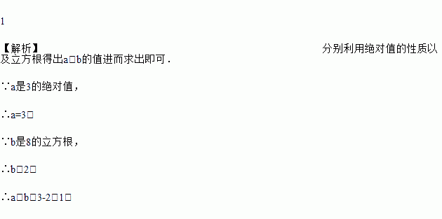 a是3的绝对值,b是8的立方根,则a-b的值为________.