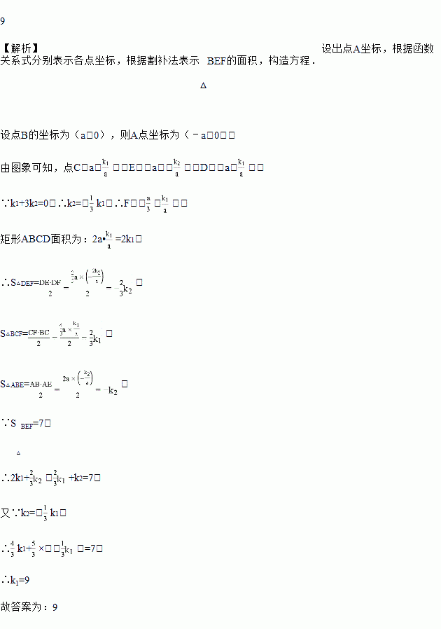 (x<0)的图象分别与AD,CD交于点E,F,若S△BEF=7,k1+3k2=0,则k1等于_____.