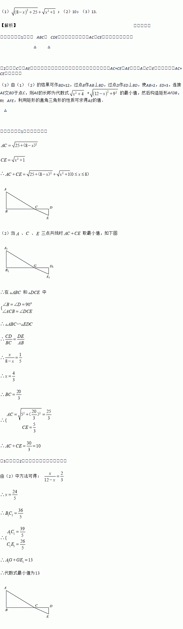 如图,C为线段BD上一动点,分别过点B、D作AB⊥BD,ED⊥BD,连接AC、EC.已知AB=5,DE=1,BD=8,设CD=x.