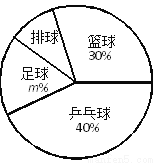 (2)扇形统计图中m=_________,表示“排球”的扇形的圆心角是________度;