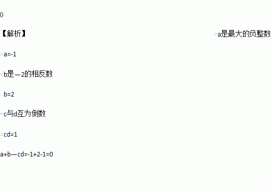 已知a是最大的负整数,b是—2的相反数,c与d互为倒数,计算:a+b—cd的值.