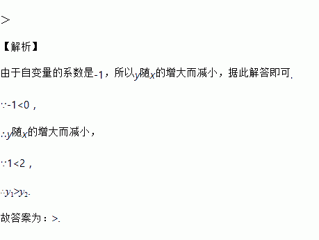 若点A(1,y1)和点B(2,y2)都在一次函数y=﹣x+2的图象上,则y1_____y2(选择“>”、“<”、=”填空).