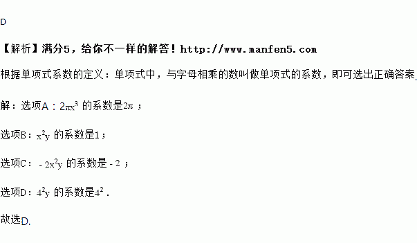 的系数是 D. ![]()