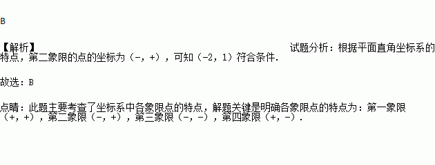 A. (2,1) B. (-2, 1) C. (-2,-1) D. (2,-1)