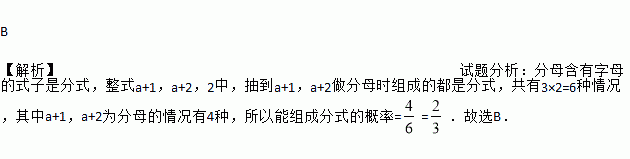 (2015甘南州)在盒子里放有三张分别写有整式a+1,a+2,2的卡片,从中随机抽取两张卡片,把两张卡片上的整式分别作为分子和分母,则能组成分式的概率是( )