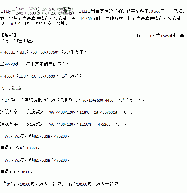 ÐÂÅ©´åÉçÇø¸ÄÔìÖУ¬ÓÐÒ»²¿·ÖÂ¥ÅÌÒª¶ÔÍâÏúÊÛ£®Ä³Â¥Å̹²23²ã£¬ÏúÊÛ¼Û¸ñÈçÏ£ºµÚ°Ë²ãÂ¥·¿ÊÛ¼ÛΪ4 000Ôª/Ã×2£¬´ÓµÚ°Ë²ãÆðÿÉÏÉýÒ»²ã£¬Ã¿Æ½·½Ã×µÄÊÛ¼ÛÌá¸ß50Ôª£»·´Ö®£¬Â¥²ãÿϽµÒ»²ã£¬Ã¿Æ½·½Ã×µÄÊÛ¼Û½µµÍ30Ôª£¬ÒÑÖª¸ÃÂ¥ÅÌÿÌ×·¿Ãæ»ý¾ùΪ120Ã×2.