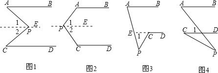 分析:图1:首先过点P作PE∥AB,由AB∥CD,即可得AB∥PE∥CD,然后根据两直线平行,内错角相等,即可求得答案;