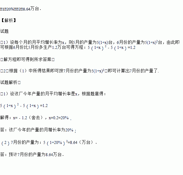 某电冰箱厂每个月的产量都比上个月増长的百分数相同.己知该厂今年月份的电冰箱产量为![]()