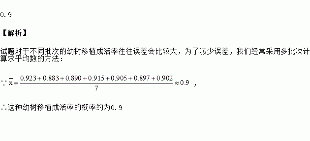 根据表中数据,估计这种幼树移植成活率的概率为 (精确到0.1).