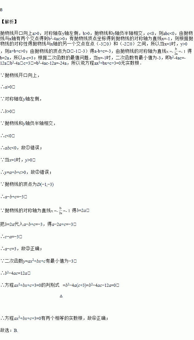 抛物线的顶点为,与轴的一个交点在点和之间,其部分图象如图所示,则以下结论:①;②;③;④方程以有两个的实根,其中正确的个数为( )