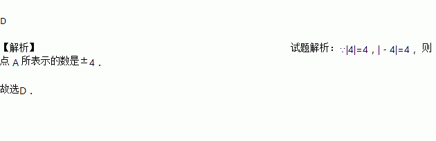 数轴上一点 A,一只蚂蚁从 A 出发爬了 4 个单位长度到了原点,则点 A 所表 示的数是( )