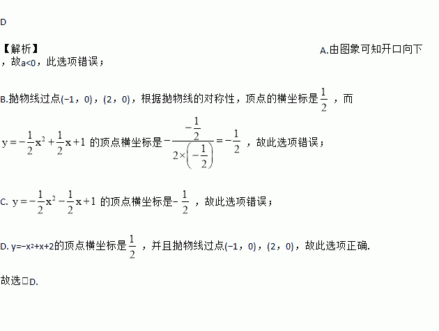 A. y=x2-x-2 B. y=-x2-x+2 C. y=-x2-x+1 D. y=-x2+x+2