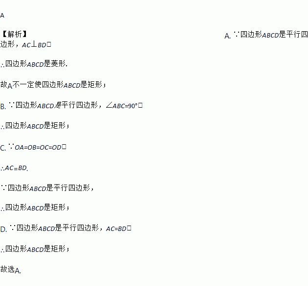如图ABCD是平行四边形,下列条件不一定使四边形ABCD是矩形的是 ( ).