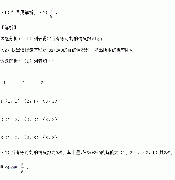 (2)求每次游戏结束得到的一组数恰好是方程x2-3x+2=0的解的概率.