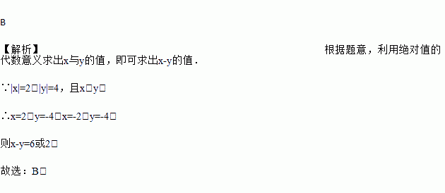 已知|x|=2,|y|=4,且x>y,则x﹣y的值为( )