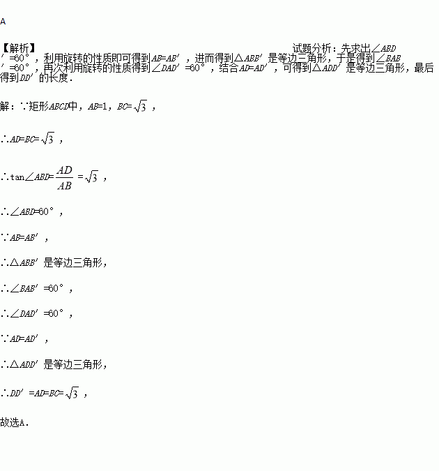 .将矩形ABCD绕点A逆时针旋转至矩形AB′C′D′,使得点B′恰好落在对角线BD上,连接DD′,则DD′的长度为( )