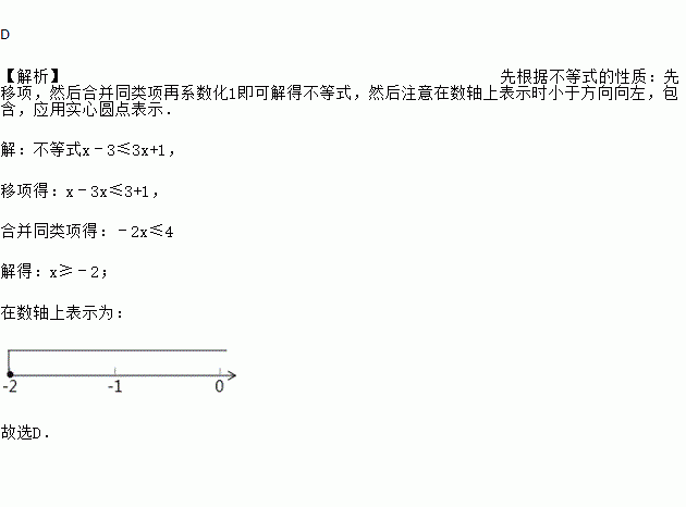 不等式x-3≤3x+1的解集在数轴上表示正确的是( )
