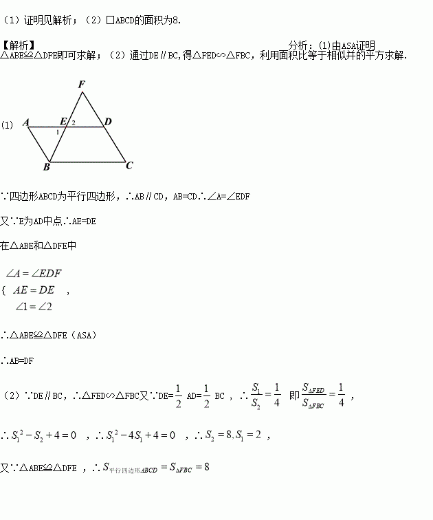 (2)若△DEF的面积为S1,△BCF的面积为S2,且S12-S2+4=0,求□ABCD的面积.