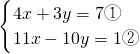 将x=1代入①得:4+3y=7,即y=1,