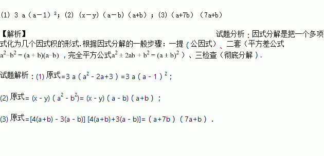 (1) 3a3-6a2+3a.