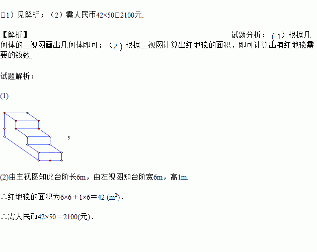 (2)若红地毯每平方米50元,那么铺红地毯需要多少钱?