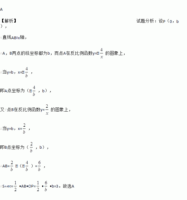 的图象交于点A和点B,若点c是x轴上任意一点,连接AC、BC,则△ABC的面积为( )