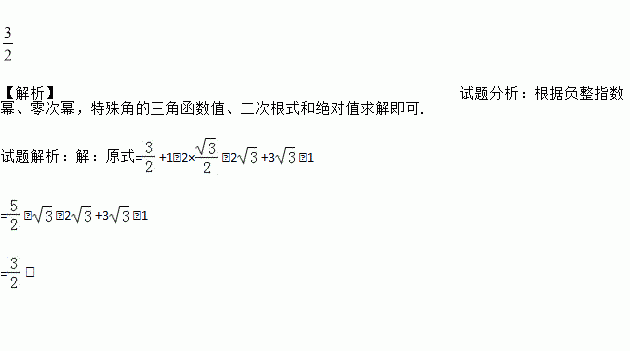 计算:()﹣1+(π﹣3.14)0﹣2sin60°﹣+|1﹣3|