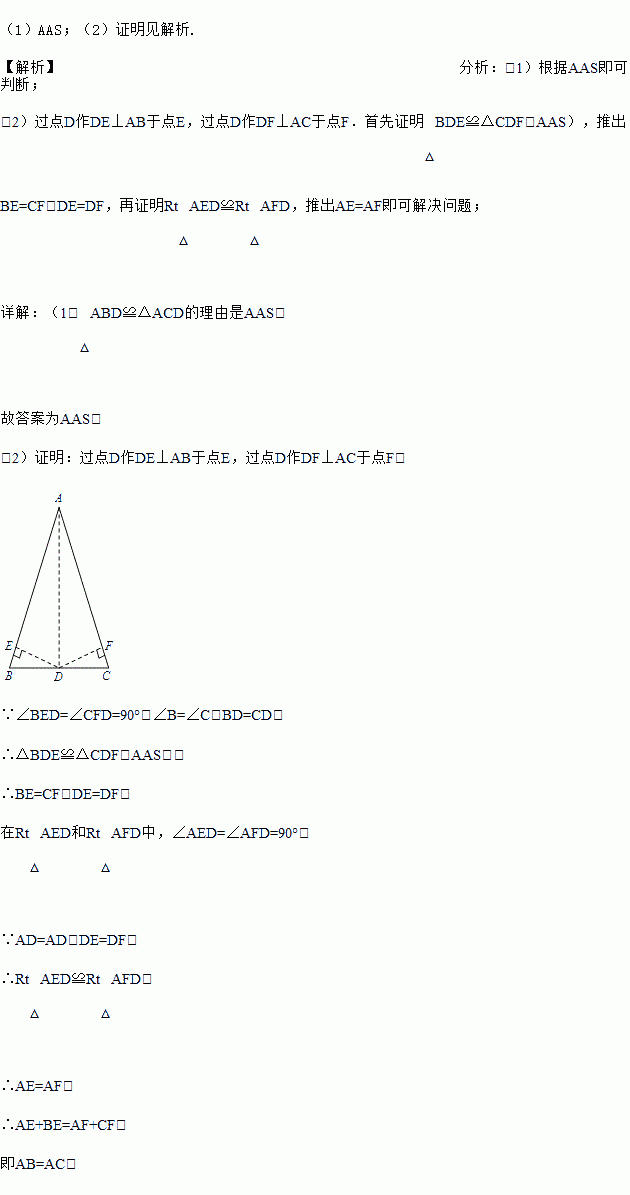 (1)请你写出小刚与小亮方法中△ABD≌△ACD的理由: