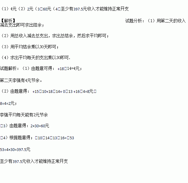 (2)照这个情况估计,李强平均每天能有多少节余?