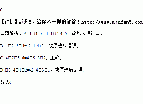 C. 4﹣7﹣5+8=4﹣5+8﹣7 D. ﹣3+4﹣1﹣2=2+4﹣3﹣1