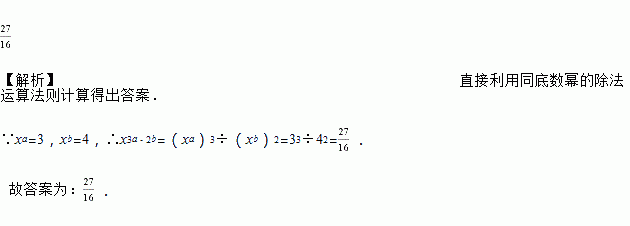 已知xa=3,xb=4,则x3a﹣2b的值是_____.