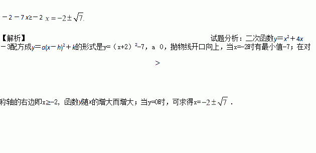 已知二次函数y=x2+4x-3,当x=______时,函数y有最值______,当x______时,函数y随x的增大而增大,当x=______时,y=0.