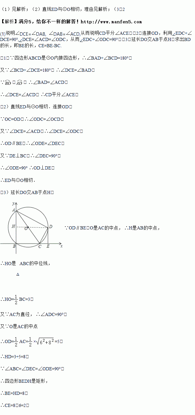 (1)求证:CD平分∠ACE;