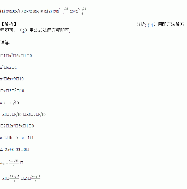 (1)x2-6x-1=0; (2)2x2-5x-1=0
