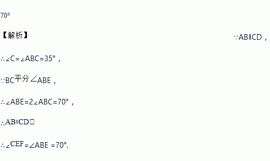 如图,已知AB∥CD,BC平分∠ABE,∠C=35°,则∠CEF的度数是___________.