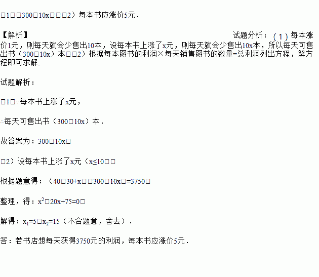 (2)若书店想通过售出这批图书每天获得3750元的利润,应涨价多少元?