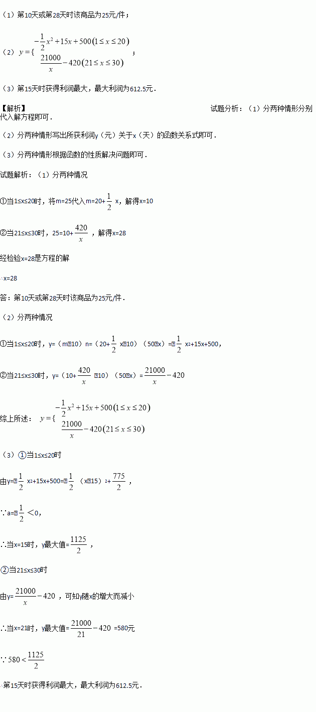 (2)求网店销售该商品30天里所获利润y(元)关于x(天)的函数关系式;