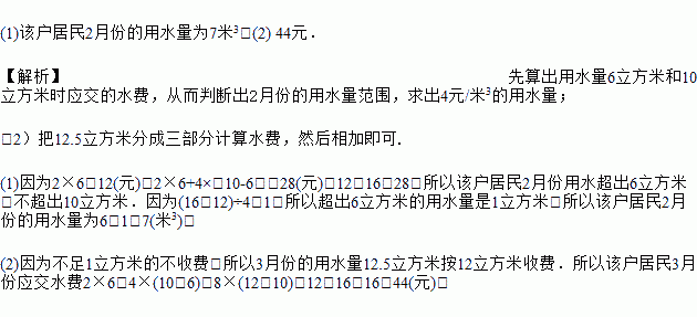 (2)若该户居民3月份用水12.5立方米,则应交水费多少元?