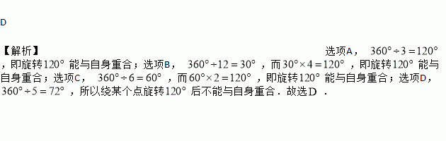 下列各图形分别绕某个点旋转后不能与自身重合的是( ).