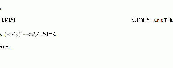 A. 2xy2•(﹣x)=﹣2x2y2 B. 6xy2÷2xy=3y