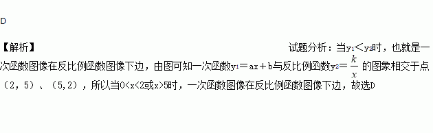 A. x<2 B. x>5 C. 0<x<5 D. 0<x<2或x>5