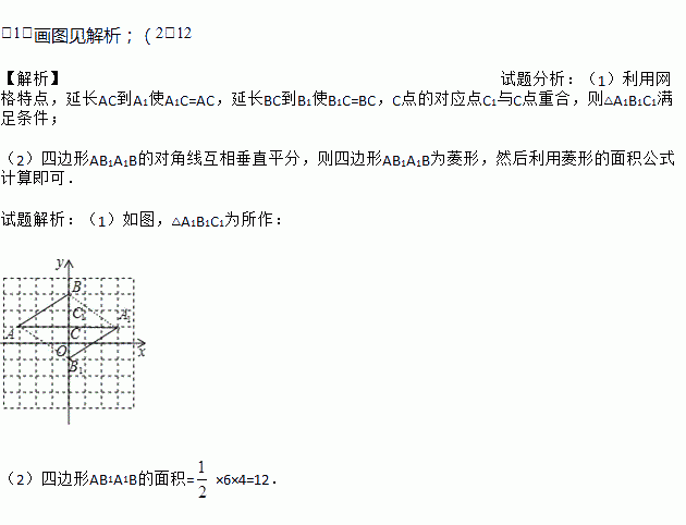 (1)将△ABC以点C为旋转中心旋转180°,画出旋转后对应的△A1B1C;