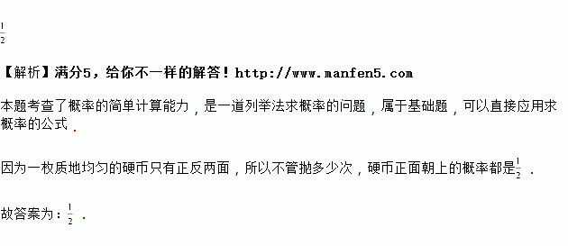 小莉抛一枚质地均匀的硬币,连续抛三次,硬币落地均正面朝上,如果她第四次抛硬币,那么硬币正面朝上的概率为________.